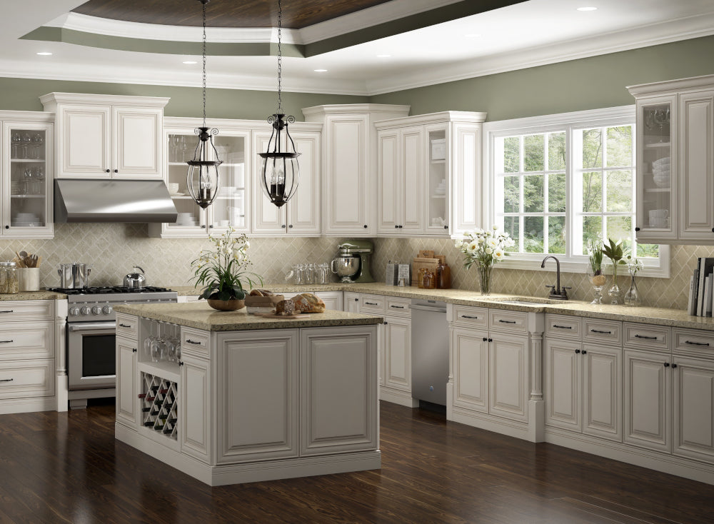 Elegant and textured, Casselberry Antique White cabinets add depth with its lightly distressed glaze detailing. Their soft ivory tone captures a sense of heritage and sophistication, creating a refined, old-world charm with modern functionality.